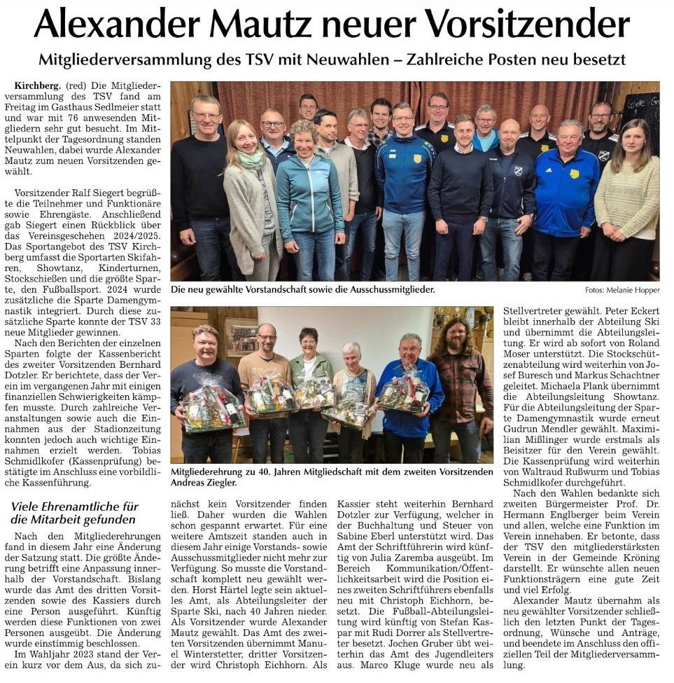 02.04.25: Unsere sehr gut besuchte Generalversammlung, fand am 21.03. 2025 im Gasthaus Sedlmeier um 19:00 Uhr statt mit anschließender Neuwahl der Vorstandschaft... [weiterlesen]